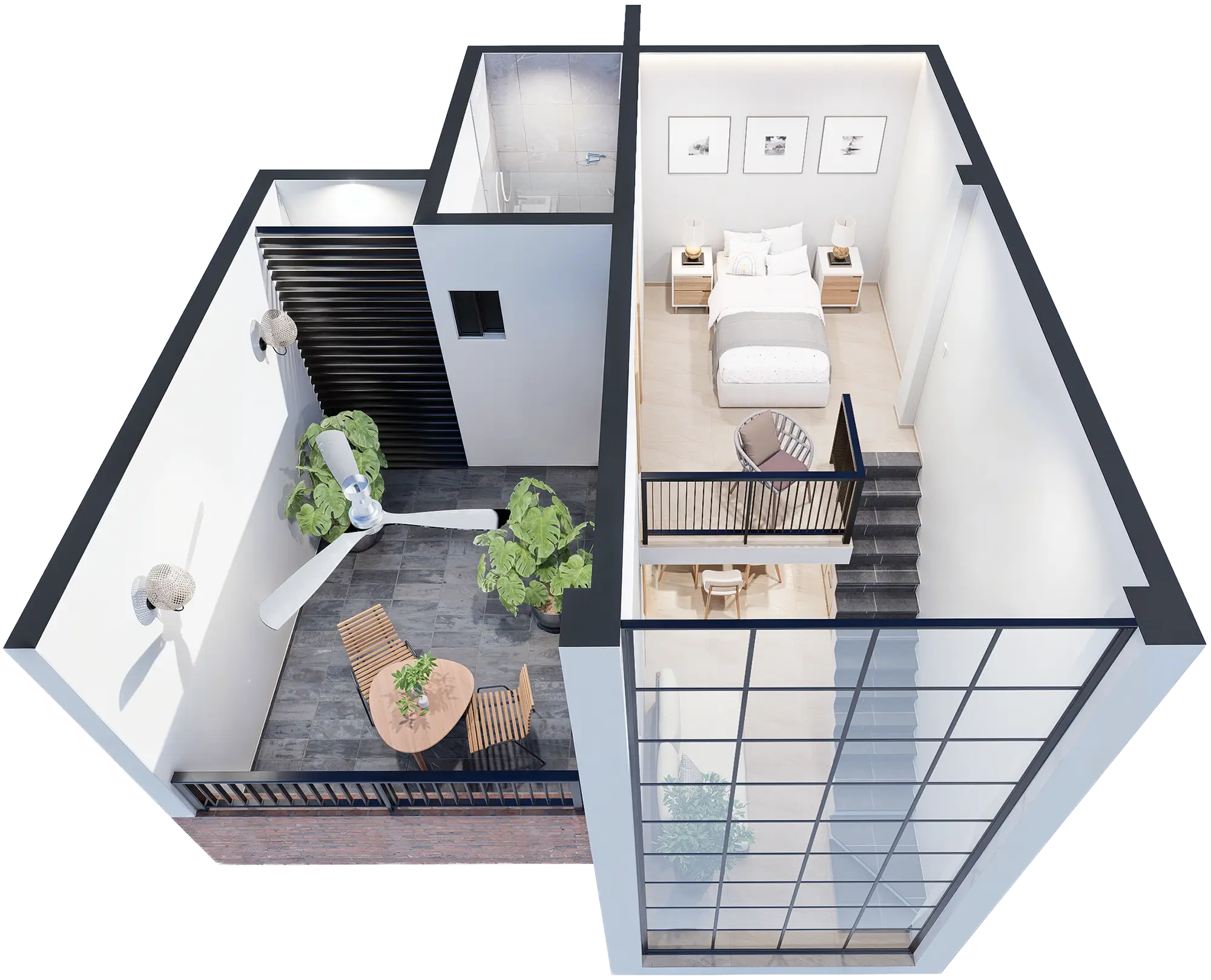 - Lounge area with grill and seating