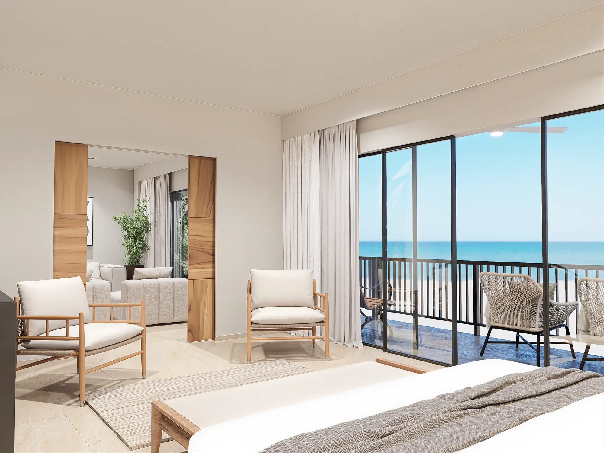 A 141 m² primary Boutique top-floor suite featuring 2 bedrooms, including a master suite with a direct ocean view.